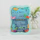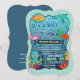 Das ist ein Junge! Super niedlich, lustiges Meeresleben, Wassersport-Mädchen-Dusche laden auf aquamarinen grünen und weißen Streifen mit leuchtenden Farben ein. Zu den bunten, aquatischen und ozeanischen Lebewesen zählen Aqua- und Gelbklee, grüne und orangefarbene Meeresschildkröten, aquamarine und orangefarbene Fische, türkisfarbener Delphin, orangefarbenes Seepferd, hellrosa Krabben und orange und rosa Korallen auf dem Meeresboden. Die sonnigen Schriftart scheinen unter Wasser zu schweben und im Hintergrund blasen unter dem Ozean.