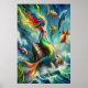 Farbenfrohe Meerjungfrau sitzend auf Rocky Shore 2 Poster