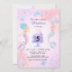 Farbenfrohe Aquarellmädchen unter der Einladung zum Seeburtstag. Adorable mädchenhafte Gestaltung mit Meerjungfrauen, einem Kuchen mit Kerzen, Delphin, Algen und Seestern für ein Mädchen jeden Alters.