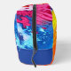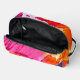 Dopp-Kit. Farbenfrohe Ölfarbe abstrakt in blau, lila, rosa, orange, rot und gelb, alles überdruckt Totbeutel Ein helles modernes Design.