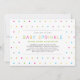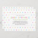 Passen Sie diese stilvolle, moderne neutrale Baby Sprinkle Einladung an. Schönes, sauberes Design mit bunten Sprinkelpunkten auf weißem Hintergrund. Schnelle und einfache Anpassung, ändern Sie alle Vorlageninformationen mit Ihren eigenen.