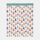 Dieses Holiday Thema Fleece Decke hat ein wiederholt Muster der modernen Weihnachtsbäume in verschiedenen Farben und Mustern. Die Bilder werden auf einem weißen Hintergrund platziert. Oben auf der Decke befindet sich eine passende rosa gesäumte grüne Grenze. Feierlich und farbenfroh! Schauen Sie sich die passenden Produkte in unserem Shop an.