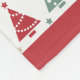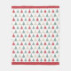 Dieses Holiday Thema Fleece Decke zeigt ein buntes Muster von roten, grünen und goldenen modernen Design Weihnachtsbäumen. Die Bilder werden auf einem weißen Hintergrund platziert, mit einem passenden roten Rand oben und unten. Feierlich! Musterdesign-Kredit an https://www.etsy.com/shop/ephrazydesign.