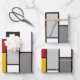 Abstrakte moderne Kunst mit bunten (rot, grau, schwarz, gelb, weiß) Rechtecken im mondrianischen Stil auf weißem Hintergrund für alle, die einfache, moderne geometrische Designs mögen.