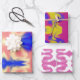 Wrapping Papier Blatt Set von drei, bedeckt in verschiedenen Designs von buntem Schmutz.
