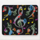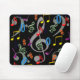 Schönes schwarzes Mousepad mit farbenfrohen Noten Design.