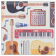 Farbenfrohe Musikinstrumente und -zeug, nahtlose Wiederholmuster
