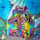 Das farbenfrohe Muster des Tierdrucks zeichnet sich durch ein farbenprächtiges Muster aus.