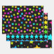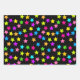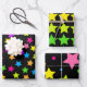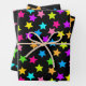 Farbenfrohe Neonsterne auf schwarz Geschenkpapier Set