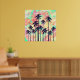 Farbenfrohe Neonwasserfarbe mit schwarzen Palmen Poster