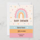 Diese bezaubernden Babydusche-Einladungen sind mit einem schicken Boho-Stil und einer angesagten, handgeschriebenen Schrift ausgestattet. Der niedliche, terrakottfarbene Regenbogen ist mit orangefarbenen und pfirsichfarbenen Blume auf weißem Hintergrund dekoriert.