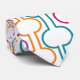 Diese Krawatte hat ein Art Deko-Design von orange, türkis, rosa, blau, gelb und lila Halbkreise verbinden sich mit Linien auf einem Feld von Weiß.
