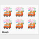 Bunte Ostereier für Carrots Bunny Bus Square Sticker. Ein niedlicher Osterhase, der seinen Karottenbus fährt und bereit ist, einen Korb voller Ostereier für Karotten zu tauschen. Ideal für die jährliche Ostereierjagd, die familiäre Ostereierjagd, das Abendessen, die Osterfeier, die Partys der Gemeinde, die Arbeitgeberveranstaltungen, sogar die Geschenkkörbe! Die Typografie ist farbenfroh und leicht zu lesen.