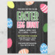 Das Design umfasst farbenfrohe Ostereier rund um die Grenze, einen dunkelgrauen Holzboden und einen niedlichen Ostereier-Schriftart. Ideal für Veranstaltungen, Einladungen, Kirchenveranstaltungen und vieles mehr!