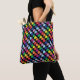 Freuen Sie sich auf eine Tasche für Pickleball, der Verwandte oder Freunde spielt. Farbenfrohe Paddelpaddel 💚 ❤️ 💙 auf schwarzem Hintergrund 💛. Vertikales Muster auf der Rückseite