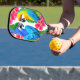 Farbenfrohe Papageien mit tropischen Blume Pickleball Schläger