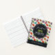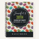 Personalisiertes Gästebuch mit einem niedlichen Makaronmuster in vielen verschiedenen Farben mit einem schwachen Polka-Punktmuster dahinter. Ein schwarzer Kreis mit personalisiertem Text, der über dem Muster platziert ist.