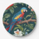 Farbenfrohe Parrot Tropical Dschungel Blätter Pappteller