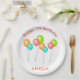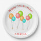 Niedliche Farbige Party Balloons Kinder Geburtstagspapier Teller. Niedliche Geburtstag Party Teller mit vier bunten Ballons in Rot, Grün, Blau und Orange. Personalisieren Sie die Teller mit dem Namen Ihres Kindes.