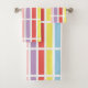 Geometrisches lineares, rechteckiges, gestreiftes Muster in den Farben Blau, Orange, Grün, Rosa, lila, Rot und Gelb.