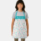 Farbige abstrakte Pastellfarbenstriche, Schürze des Musterdrucks. Funktionen zur Koordination von blauen Farbriemen und Textzeile in Weiß für den Namen.