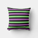Moderne Streifenmuster Kissen mit farbigen horizontalen Streifen in schwarz, pastellgrün und lila Farben.