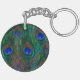 Farbenfrohe PfauenFedern Etching Style Schlüsselanhänger