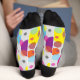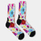 Mehrfarbige, farbenfrohe Polka-Punkte mit weißem Hintergrund.