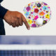 Mehrfarbige, farbenfrohe Polka-Punkte mit weißem Hintergrund.