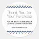 Werben Sie Ihr Geschäft und Ihre Marke auf Umschlägen, Paketen, Ordnern und Werbeprodukten mit diesen Aufklebern mit farbigen Polka-Punkten, Rickrack, anpassbarem Text, der sagt: "Danke für Ihren Kauf", und einem Ort für Ihren Ladennamen, Tagline und Website. Dieses Design ist minimalistisch und lustig, und es wird für Menschen jeden Alters. Passen Sie den Text an Ihre Bedürfnisse an.
