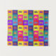 Helle und farbenfrohe Wandtapeten im Pop. Blöcke mit hellen Farben gefüllt mit bunten Krabbenbildern.