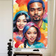 Ein helles, fröhliches Poster mit glücklichen Gesichtern aus Afrika, Mexiko und Ostasien. Die Leute lächeln und tragen farbenfrohe, traditionelle Kleidung. Der Hintergrund ist voll von sanften, Aquarellfarben in allen möglichen hellen Farben, die alles lebendig und unterhaltsam aussehen lassen. Dieses Poster feiert, wie cool es ist, dass Menschen aus verschiedenen Kulturen zusammenkommen!