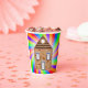 Farbenfrohe Psychedelic Brick House Rainbow Design Pappbecher