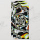 Dieses farbenfrohe Lesezeichen zeichnet sich durch eine abstrakte, psychedelische Spirale Fraktal-Kunst in Schwarz und Weiß mit gelben, orangen, blauen und grünen Akzenten aus.