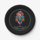 Auf diesen Party-Papier-Tellern sind ein bunter Racehorse-Kopf und ein Mist auf schwarzem Hintergrund zu sehen. PASSENDE Artikel in unserer Sammlung.