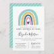Niedlicher illustrierter Regenbogen, Babydusche mit E-Mail-Einladung. Vorlage erlaubt die Anpassung aller Texte. Auf der Rückseite der Karte wird das blaue und weiße Streifen-Muster koordiniert.