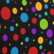 Farbenfrohe Rainbow Polka Dots auf schwarzem Design.