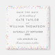Farbenfrohe Regenbogenkonfetti stehen über Ihrem besonderen Set Save the Date in stilvoller, moderner Typografie. Entwickelt von Thisisnotme©