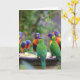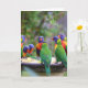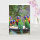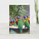 Farbenfrohe Regenbogen-Lorikeet-Papageien essen Karte