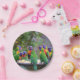 Farbenfrohe Regenbogen-Lorikeet-Papageien essen Pappteller