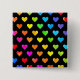 Farbenfrohe, handgemalte Wasserfarbenherzen in einem Regenbogen diagonal Streifen Muster. Jedes Herz ist etwas anders und wurde digital verändert, um eine scharfe Kante zu haben. Hier auf einer benutzerdefinierten Button-Back-Taste mit schwarzer Hintergrundfarbe angezeigt. Ändern Sie die Größe des Musters nach Ihren Vorlieben und wählen Sie eine beliebige Hintergrundfarbe aus. Fügen Sie beliebigen Text zu personalisieren, wenn gewünscht. Genießen Sie das ganze Jahr über diese hellen und fröhlichen Herzen! Gut für den Pride Month auch!