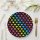 Farbenfrohe, handgemalte Wasserfarbenherzen in einem Regenbogen diagonal Streifen Muster. Jedes Herz ist etwas anders und wurde digital verändert, um eine scharfe Kante zu haben. Hier auf benutzerdefinierten Papier Party-Tellern mit schwarzer Hintergrundfarbe dargestellt. Ändern Sie die Größe des Musters nach Ihren Vorlieben und wählen Sie eine beliebige Hintergrundfarbe aus. Fügen Sie beliebigen Text zu personalisieren, wenn gewünscht. Genießen Sie dieses helle und fröhliche Herz das ganze Jahr über für jeden Anlass und auch Valentinstag!