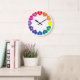 Farbenfrohe Regenbogenfarbenherzen auf Weiß Große Wanduhr