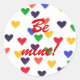 Herzmalerei in den Farben des Regenbogens, mit Be Mine! bedruckt auf Aufklebern. Kann angepasst werden.