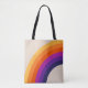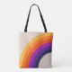 Abstrakte Abbildung des Regenbogendesigns im Retrostil in Gelb-, lila-, Blau- und Orangetönen auf beigem Hintergrund