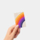 Abstrakte Abbildung des Regenbogendesigns im Retrostil in Gelb-, lila-, Blau- und Orangetönen auf beigem Hintergrund