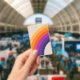 Farbenfrohe Regenbogenkunst im Retrostil Ausweis