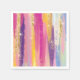 Papierservietten mit abstraktem Hintergrund. Lebhafte Streifen in fett- und pastellfarbenen Farben. Pinks, Blues, Pfefferminzen und Gelbtöne kombiniert mit Imitaten funkelnd Glitzer in Gold überlagert.
