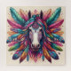 Pferdefedern! Farbenfrohe Puzzle mit Pferd und Federn.