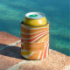 Farbenfrohe Retro 70er Streifen Wave Junggeselinne Dosenkühler